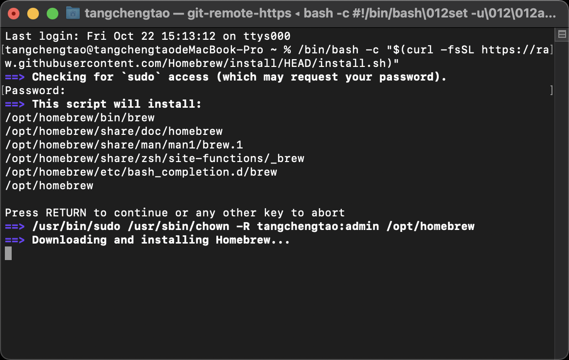 输入Mac密码,确认所需安装内容,回车进行下一步(注意:此时输入密码,页面中不显示输入内容,正常输入后按下回车即可);